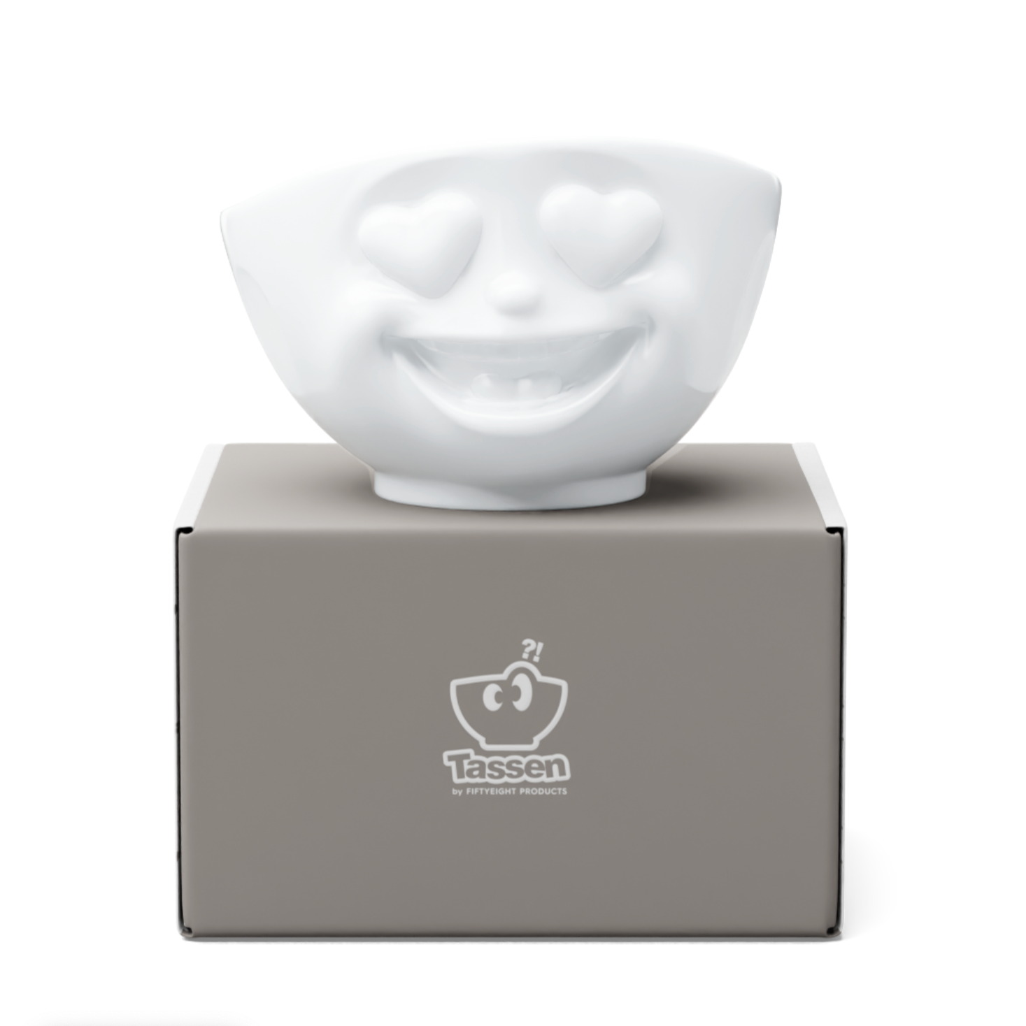 New HEARTFUL Bowl – a bowl full of love! We all love the 'heart eyes' emoji. Now you can have it on your cereal bowl – and trust us, it's even more adorable in real life than we imagined. OMG!!! This 16 oz bowl with heart eyes captures that special feeling that instantly brings a smile to your face. Perfect for muesli, soup, or your favorite sweet treats – and at the same time a wonderful gift that sends a heartfelt message without a single word. Handcrafted with love, 100% Made in Germany, it quickly becomes a favorite – both at the table and in your heart. Premium porcelain bowl in white from the family of fun dishware.
