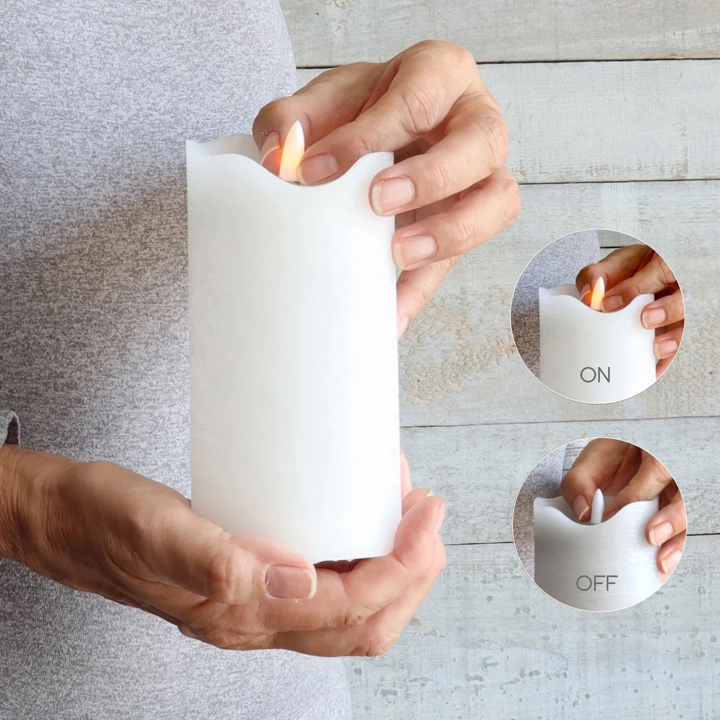 These LED candles light up with just a tap, offering a cozy flicker right at your fingertips. This set includes three candles of varying heights, perfect for creating a charming arrangement. Available in other colors too!