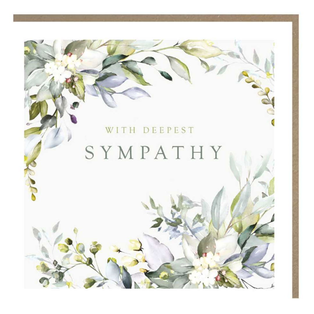 This sophisticated card expresses sincere sympathy and thoughtful remembrance, adorned with a delicate floral design.
