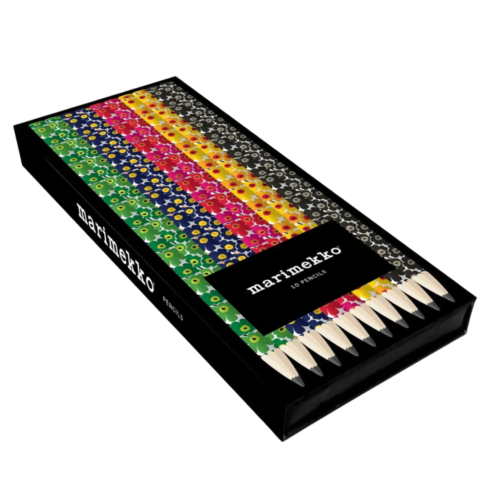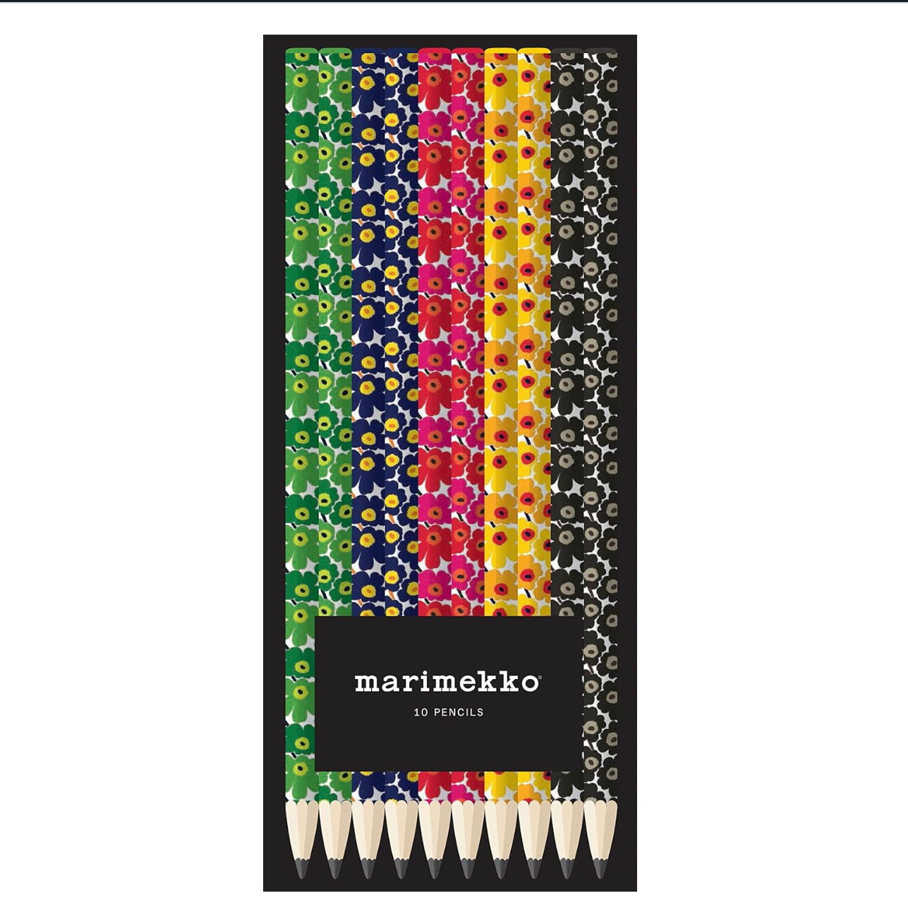 Featuring the iconic design house s most beloved pattern Unikko in 5 different colorways, this chic set of 10 graphite Standard HB/No. 2 pencils brings lively style to every writing endeavor. MARIMEKKO is a Finnish fashion and design house celebrated worldwide for its original prints and colors. More than 140 Marimekko stores serve customers around the globe.
