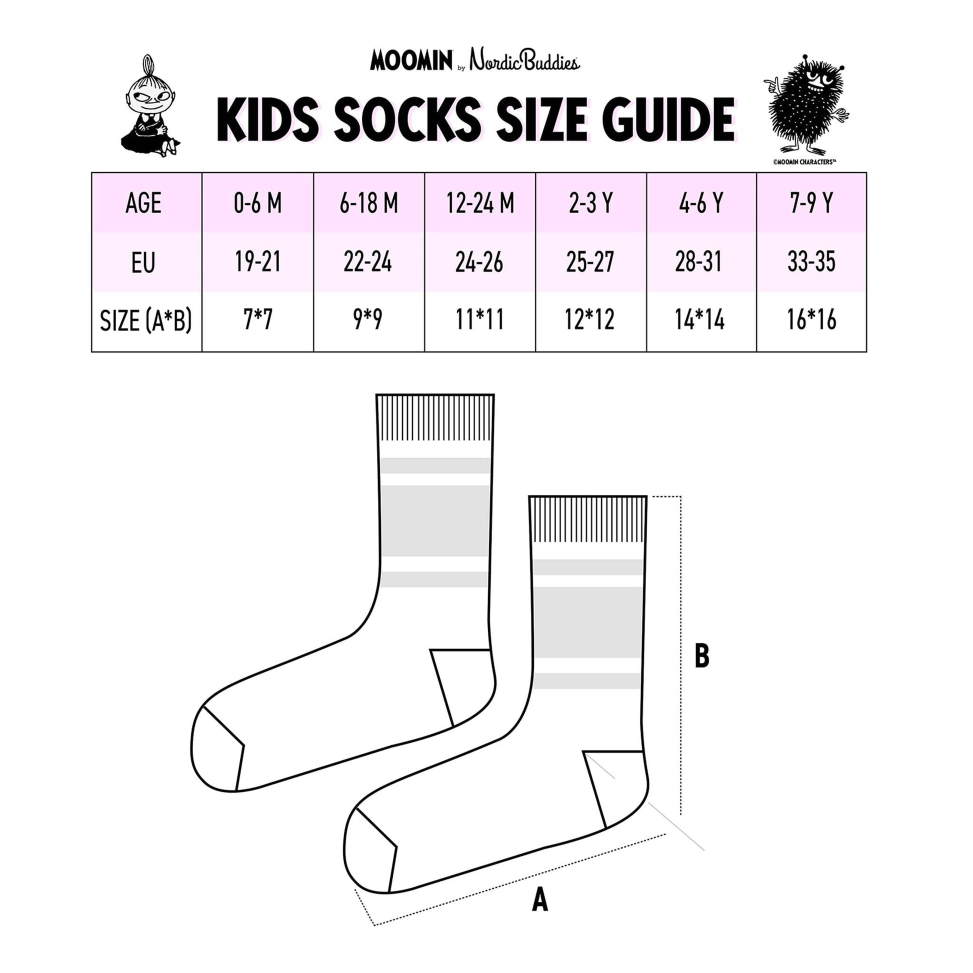 These adorable Moomin socks showcase the Snorkmaiden, a beloved character from the Moomin world. Perfect for keeping tiny feet cozy with a touch of fun!