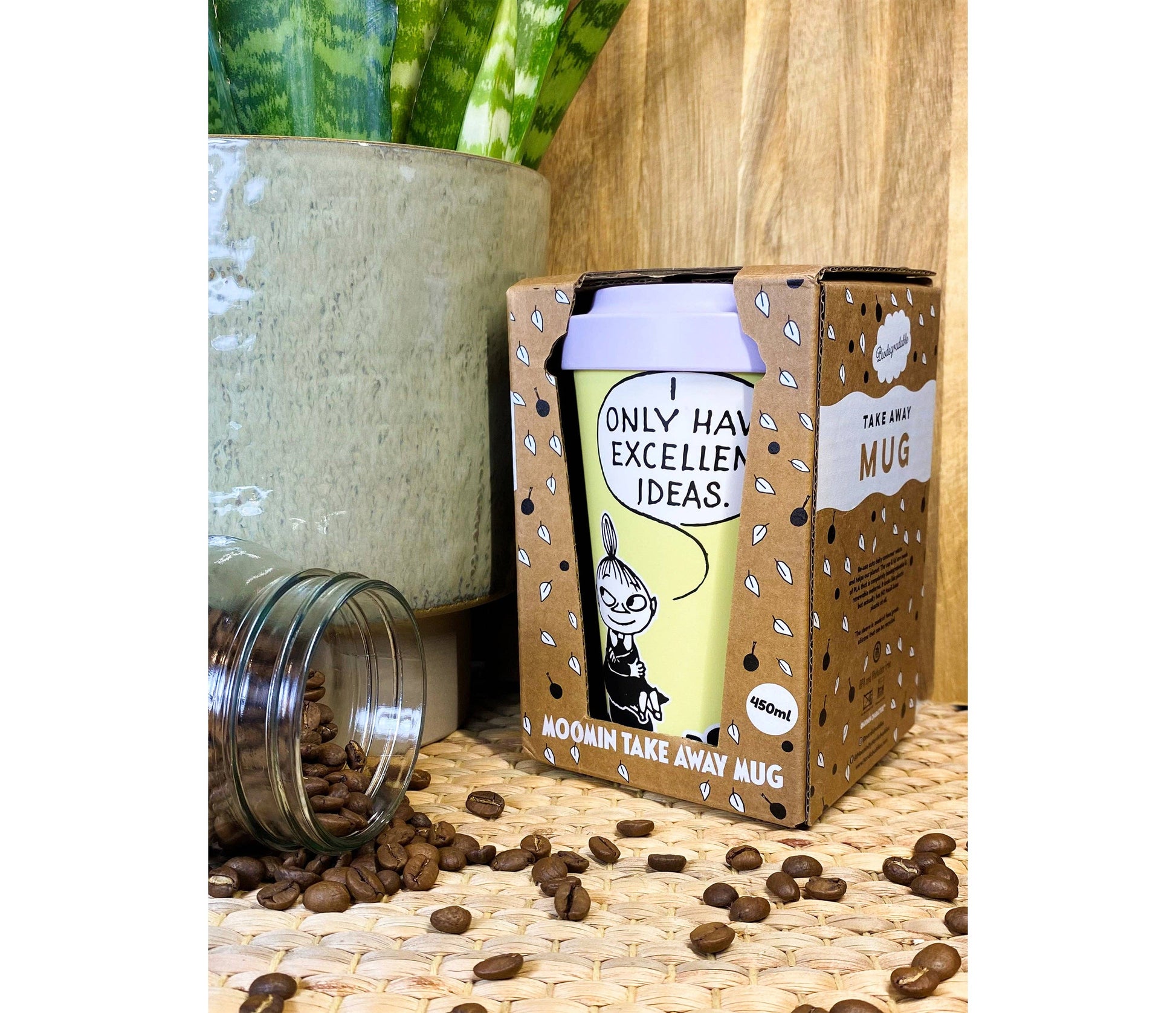 This yellow-coloured biodegradable take-away mug from Nordicbuddies features a charming illustration of the Little My. Ideal for both coffee and tea enthusiasts, it allows you to enjoy your drink on the go while maintaining the temperature—hot or cold—throughout the day. Available in multiple designs, find the Moomin mug that best suits your style and lifestyle.