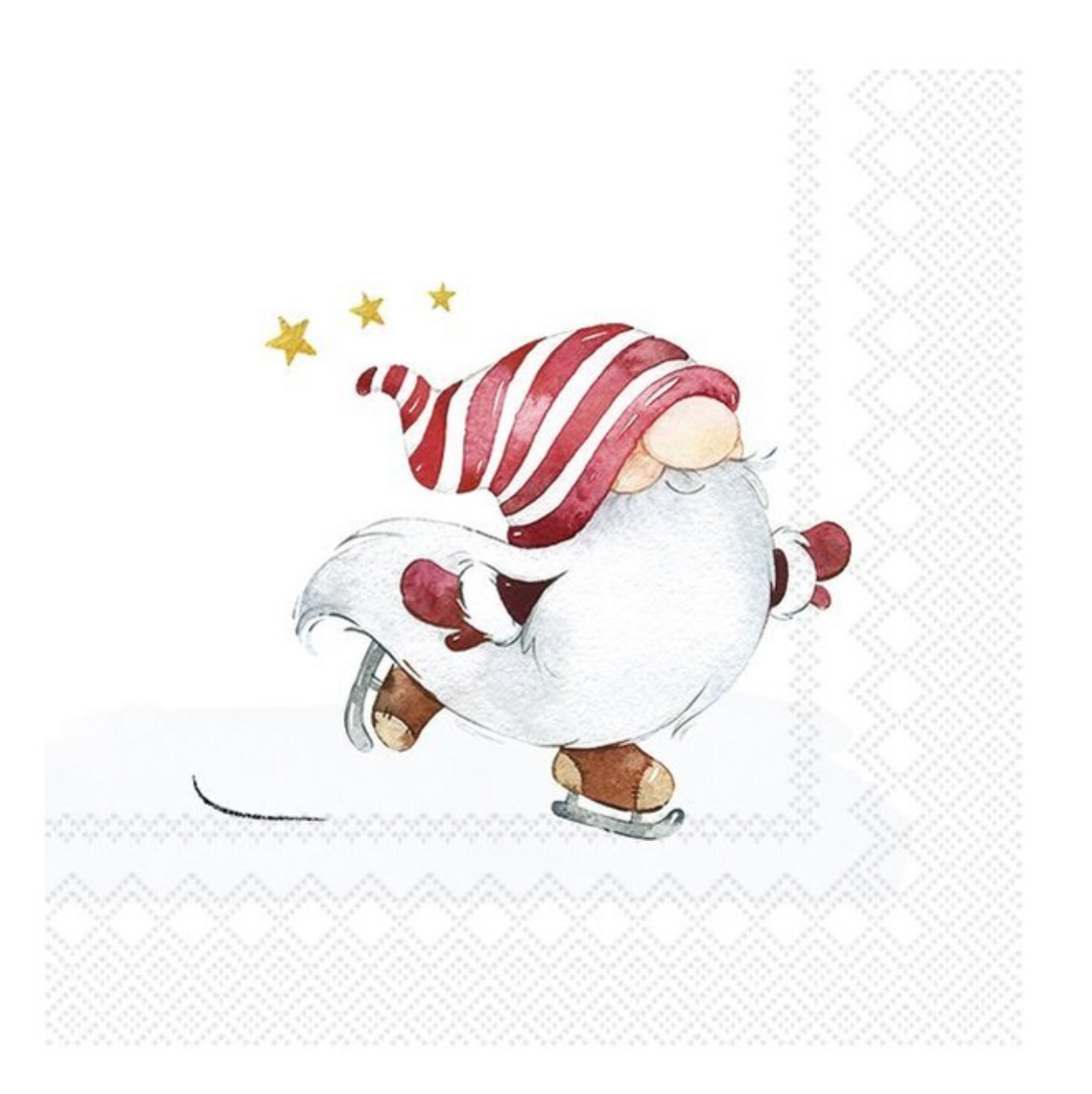 These charming cocktail napkins bring Nordic whimsy to your gatherings with a delightful illustration of a Scandinavian gnome gliding across ice. Each set contains twenty eco-conscious paper napkins, thoughtfully printed in Germany on recycled tissue. Perfect for adding a touch of playful elegance to holiday parties, winter celebrations, or any occasion that calls for a smile.